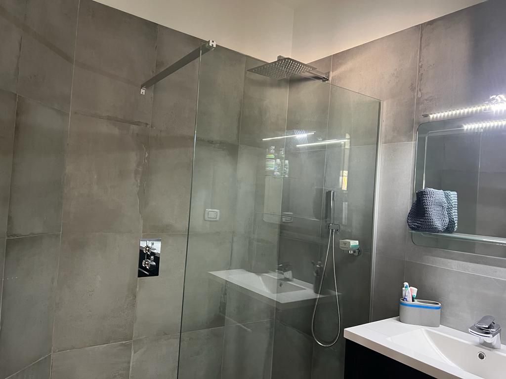 Vom Schlafzimmer aus kommen Sie ins Badezimmer mit ebenerdiger Dusche, Waschtisch und Toilette.